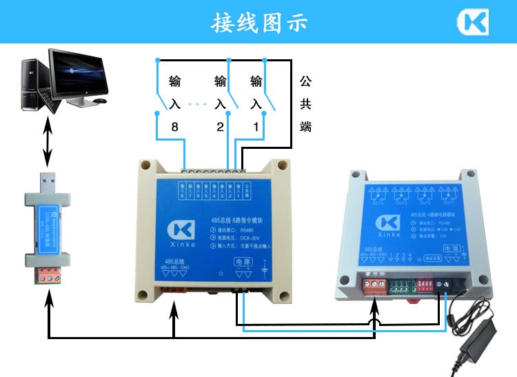 網(wǎng)絡(luò)/RS232串口/RS485總線4/8/24/32路無源開關(guān)量輸入檢測指令板